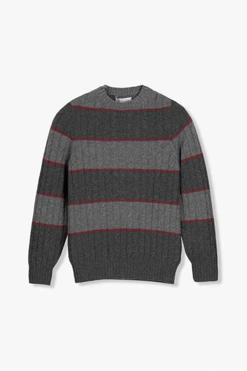 -클래식한 캐이블 짜임과 버건디 라인의 조화가 돋보이는 프리미엄 니트.