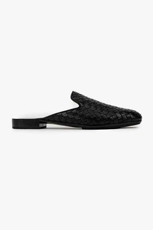 - 인터레치아토 위빙 디테일이 돋보이는 슬립온 뮬 스타일