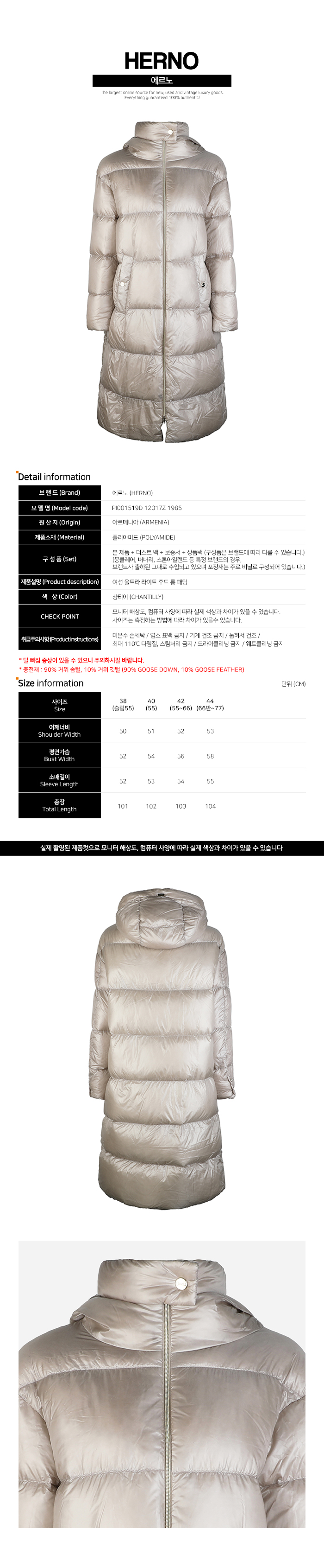 [HERNO]5F 여성 울트라 라이트 후드 롱 패딩 샹티이