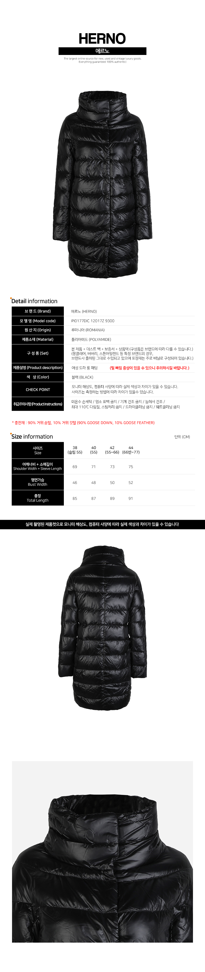 [HERNO]5F 여성 도라 롱 패딩 블랙