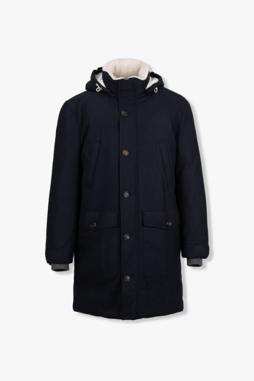 네이비 후디드 울 캐시미어 다운 패딩코트