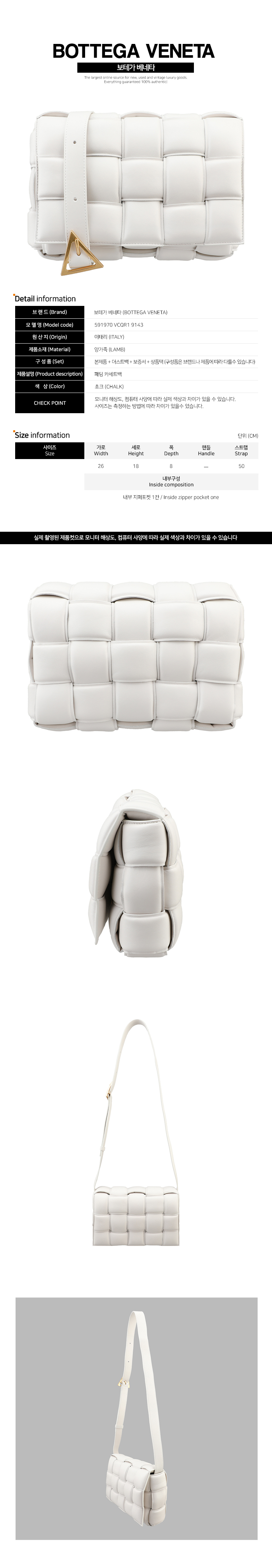 | 크기 | 가로 26cm 세로 18cm 폭 8cm 스트랩 50cm |