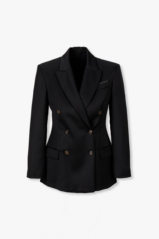 울 블랜드 스트레치 피크드 라펠 더블 블랙 자켓