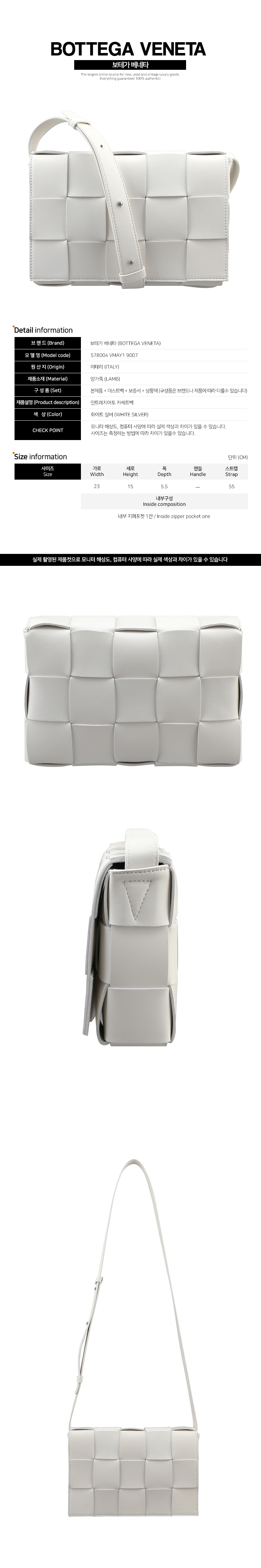 크기 가로 23cm 세로 15cm 폭 5.5cm 스트랩 55cm (내부 지퍼포켓 1칸)