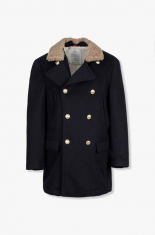 네이비 후디드 울 캐시미어 다운 패딩코트